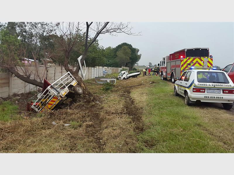 The vehicle was found on the side of the road with the trailer wedged against a tree. Upon assessment paramedics found three men, believed to be between 25 and 35 years old, who sustained various injuries. One of them was in a serious condition. Once stabilised, they were transported to Mediclinic Vereeniging for further care.