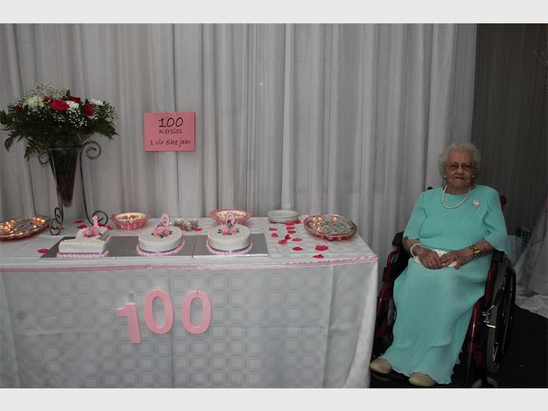 TANNIE Sarah Pienaar-Breytenbach het op Sondag 20 Maart haar 100ste verjaarsdag saam met vriende en familie by die Reading Buiteklub gevier.