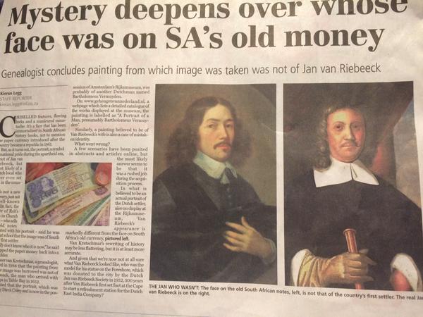 But is it important whether the man on South Africa’s old bank notes was Jan van Riebeeck or not? It’s the face South Africans are familiar with.