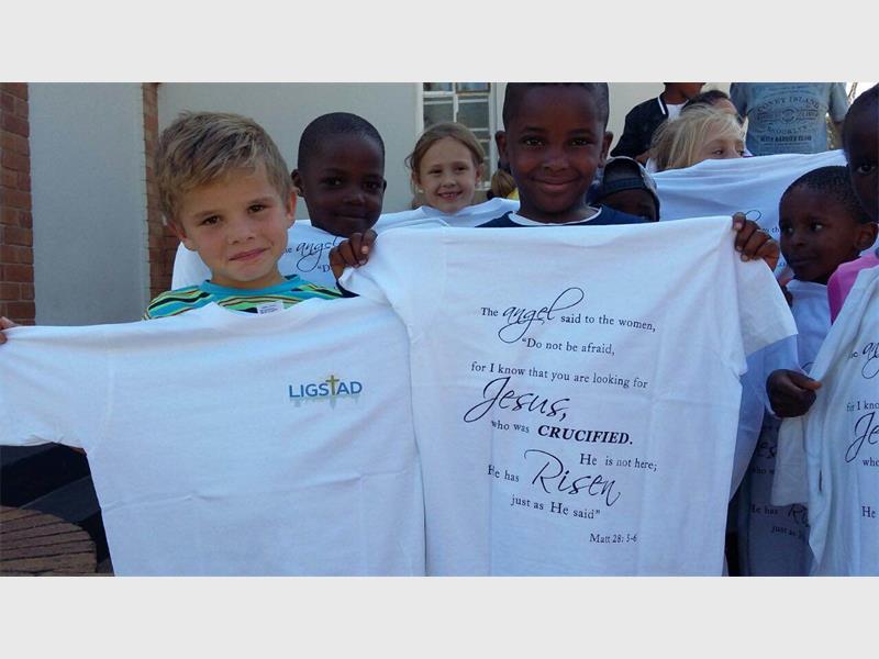 Ter voorbereiding van die Paas-uitreik, het Ligstad se kinders fluks gewerk om Paasfees boodskappies aan paaseiers te heg, T-hemde met ’n opbouende vers is gedruk en traktaatjies wat die oorsprong en betekenis van Paasfees op ’n eenvoudige wyse uiteensit, is geskep. “Ons uitreik is afgeskop met ’n Paasdiens, gelei deur ds. Deon Louw van die NG Kerk Alberton-Wes,” het Daniel Viljoen, lid, gesê.