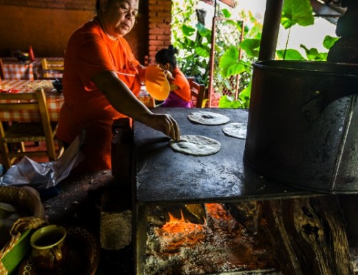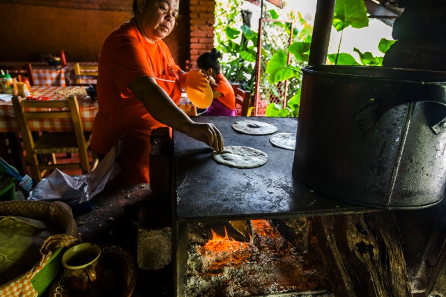 A Mexican woman making tortillas