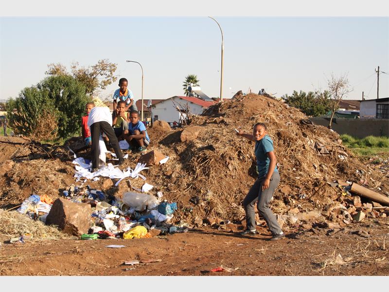 This self made playground on a heap of rubbish holds danger