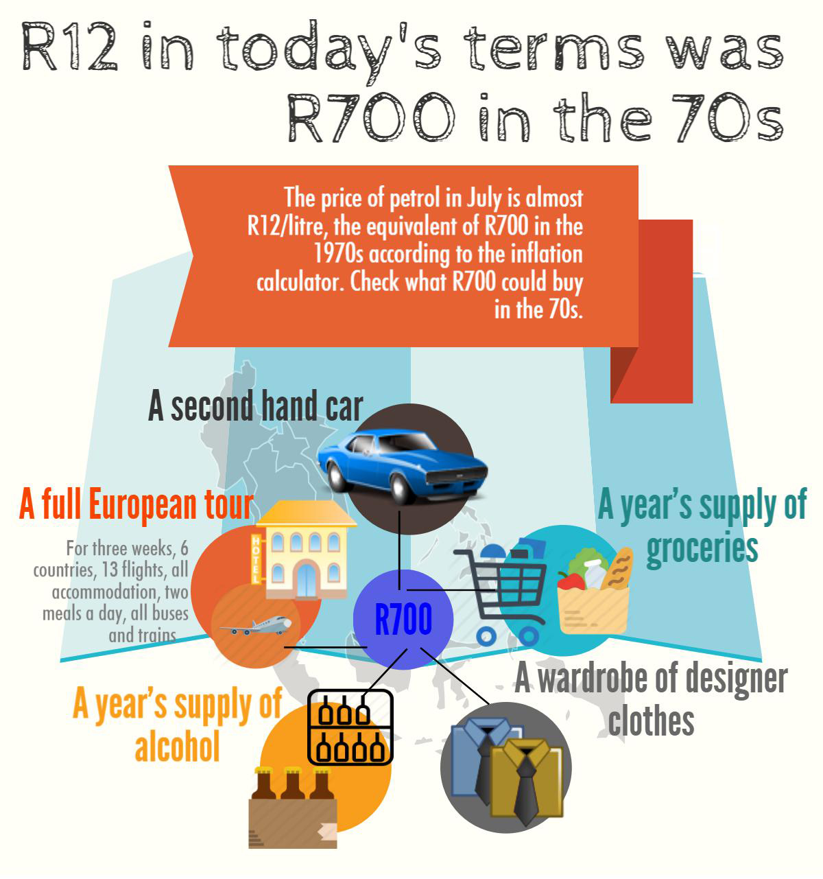 In July, the price of petrol will be around R12/litre. Check out how much this amount would have gotten you in the 1970s.