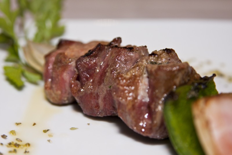 Remove the rump from the marinade; shake off the excess liquid and skewer the beef onto the prepared skewers. If you have a bay tree, using green cuttings as skewers gives the meat a wonderful flavour.