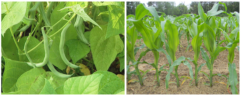 The beans attract beneficial insects that prey on corn pests such as leafhoppers, armyworms and leaf beetles. The bean vines can climb up the corn stalks.
