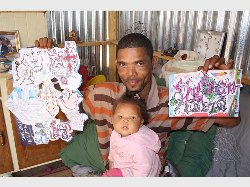 AN unemployed graffiti artist, Ivan Rodgers from Hudson Street was found in his shack putting finishing touches to his colourful graffiti work.
