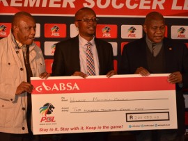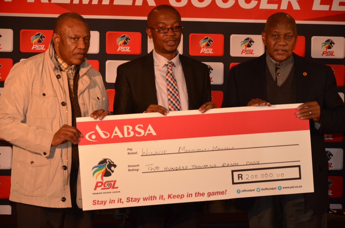 PSL honours Winnie Mandela handing her a cheque for her 80th birthday.