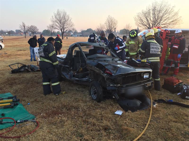 ER24 paramedics, along with another service, arrived on the scene at 06:40 and found one light motor vehicle in the left-hand lane of the road while a small bakkie was found on the side of the road. Both vehicles had sustained a large amount of damage in the collision.