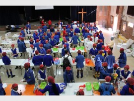 Volunteers from the high school packed these non-perishables on August 18, in the school hall, for early childhood development centres and for child-headed homes in the community.