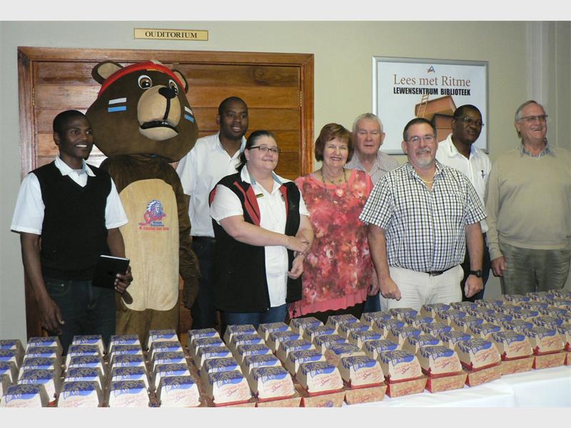 ‘n Totaal van 120 burgers met skyfies en koeldrank en die koopbewyse van R50 elk is aan die seniors geskenk.