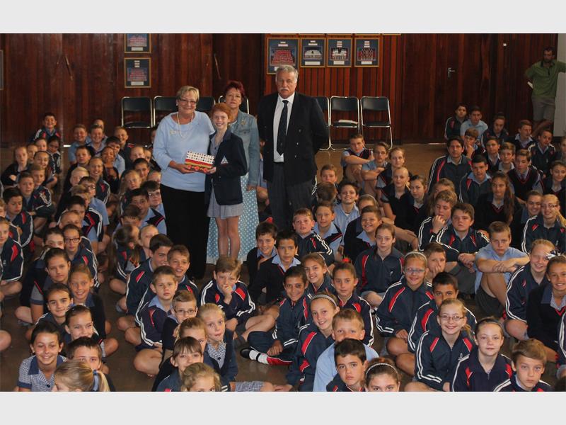 Die opbrengs van die muntlegging, van net oor die R13 000, is op 27 September, tydens die skool se oggendbyeenkoms, aan die bestuurshoof van Stepping Stone, Tersia Burger, oorhandig.