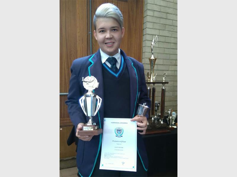 ’n Hoërskool Dinamika leerder is onlangs met verskeie pryse vereer by die skool se prysuitdeling.