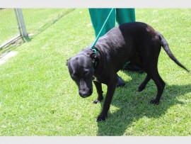 KENNEL K-12: Labrador, female, black/white; found in Old Vereeniging.