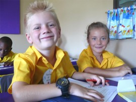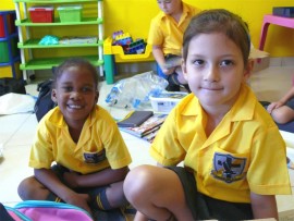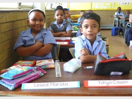 THE BOYS: Noah Godfrey (left) and Lilitha Vacu in their class at Kenton Primary.