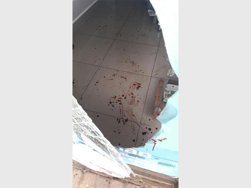 As the suspect entered through the roof, pepper gas was deployed – sending the intruder to the floor with cuts and bruises. The suspect bled while trying to escape and managed to jump in to the pharmacy in an attempt to get away from D & D reaction officers, who surrounded the building.