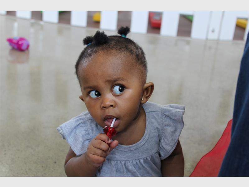 “She also just started crawling so it’s sometimes impossible to keep up with her,” laughed her mother, Moipone.