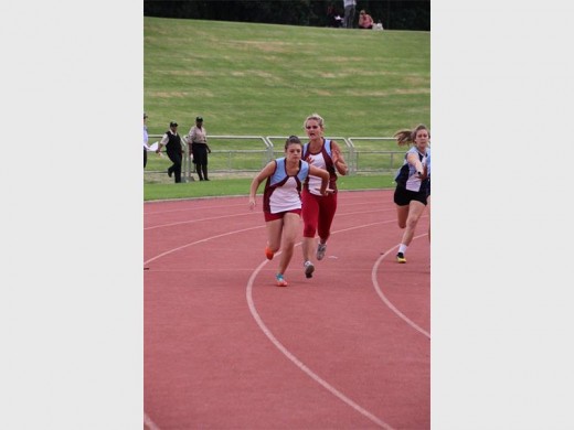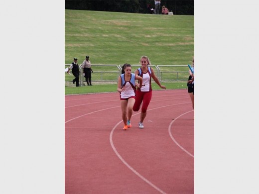IN AKSIE: Hier is Mikayla Venter en Leoni van Sittert besig om aflos te hardloop.