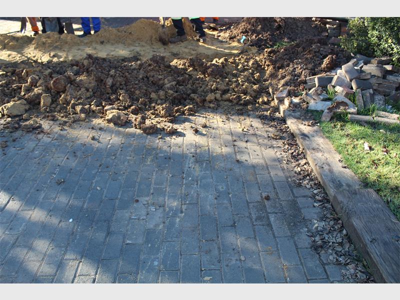 I live in Verwoerdpark in Second Avenue, across the Spar. I must complain about the construction here – the digging of soil and paving in front of the houses and then also the big ditch in the road, across the Engen garage.