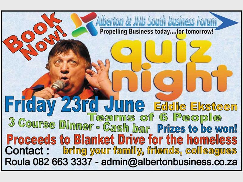 The ALBERTON & Johannesburg South Business Forum will be hosting a jolly, humour-filled quiz night on June 23 and the quiz master will be none other than Eddie Eckstein.