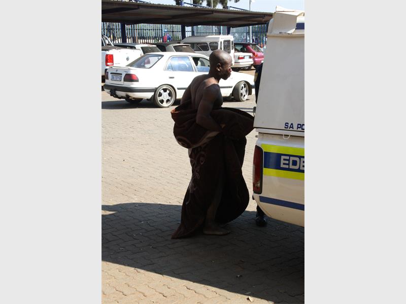 The naked and beaten man was arrested and taken to Eden Park SAPS where he was offered a blanket before being taken to hospital for treatment.