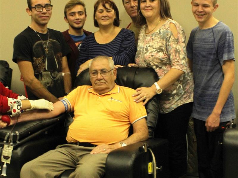 Family joins grandpa as he donates blood for 300th time