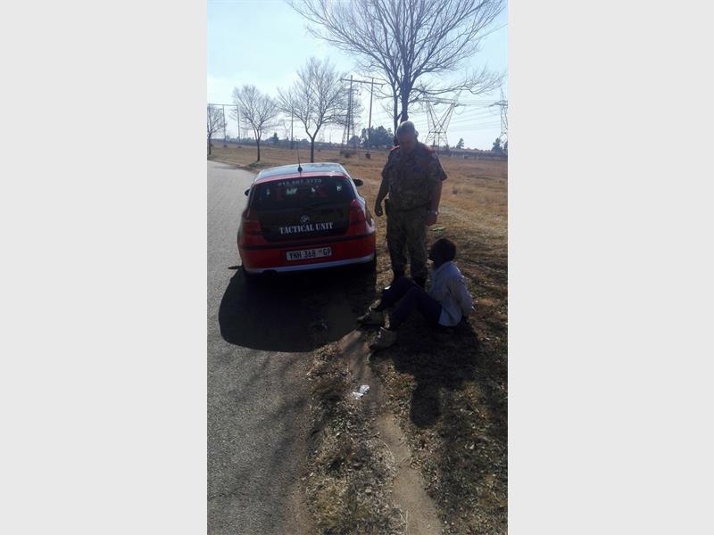 ARRESTED: Fox Security’s tactical units patrolling the streets in Brackenhurst on July 18 nabbed a man for possession of drugs. He is being detained by Brackendowns SAPS.
