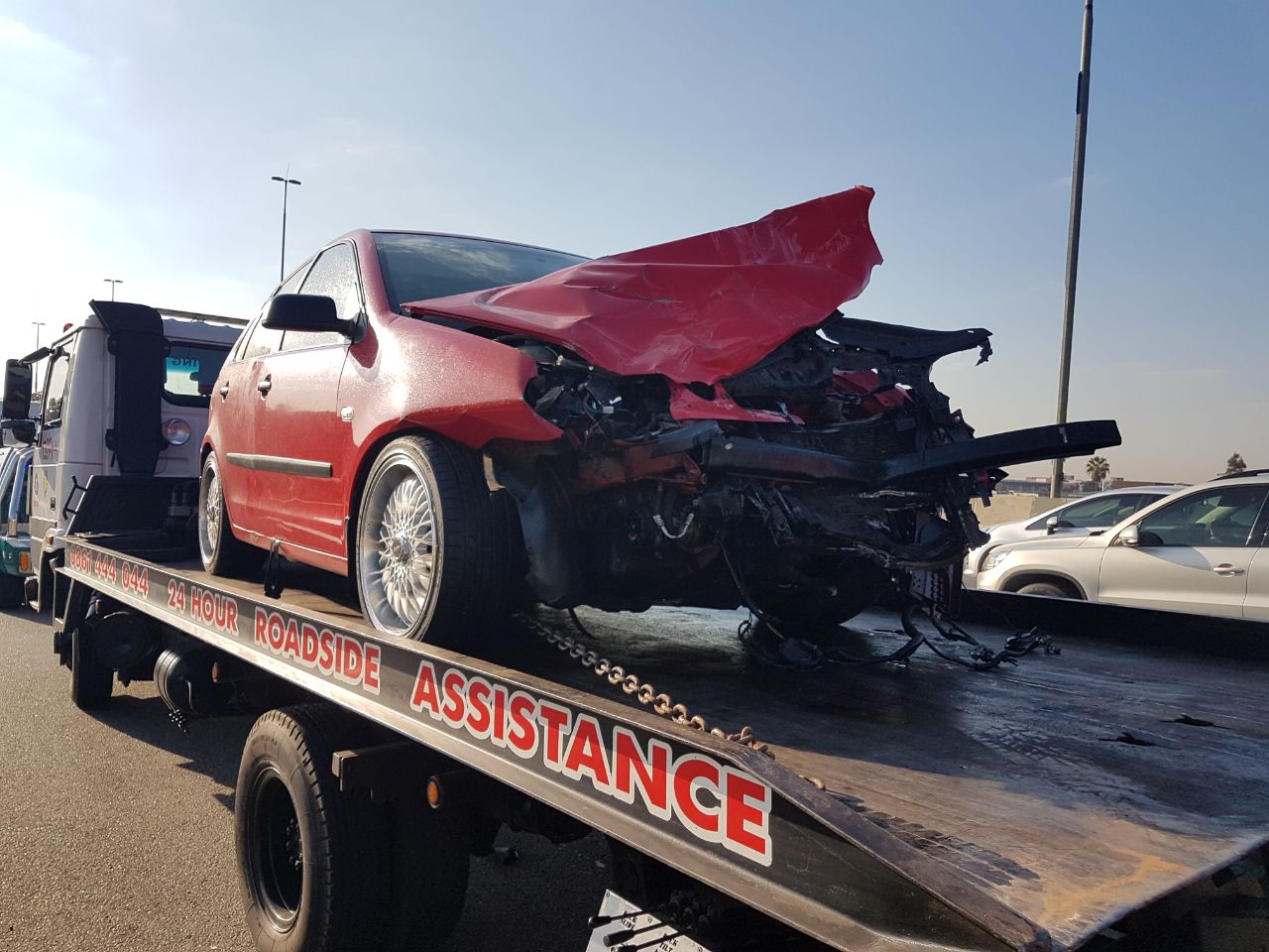 A collision between a red Polo and a white bakkie just a few meters from the Voortrekker Onramp, left traffic at a standstill this morning, August 4.