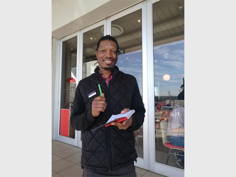 Nicky is from Harare, Zimbabwe, but he now lives in Alberton. He is the middle child of three siblings and has two children of his own. He is not married. For two years, he has been working as a waiter at Wimpy New Market.