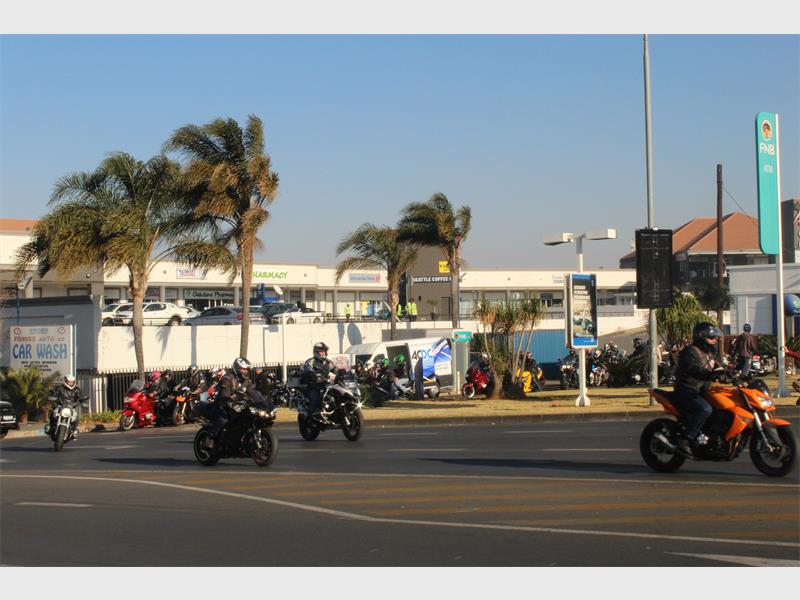 Bikers from various clubs rode a route from East to South, West to North and pulled into Engen Garage, Comaro Street, Oakdene at 8.15am.