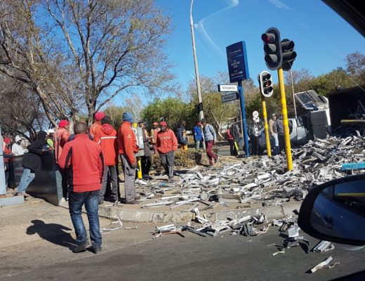 Truck overturns and spills load on Voortrekker Road