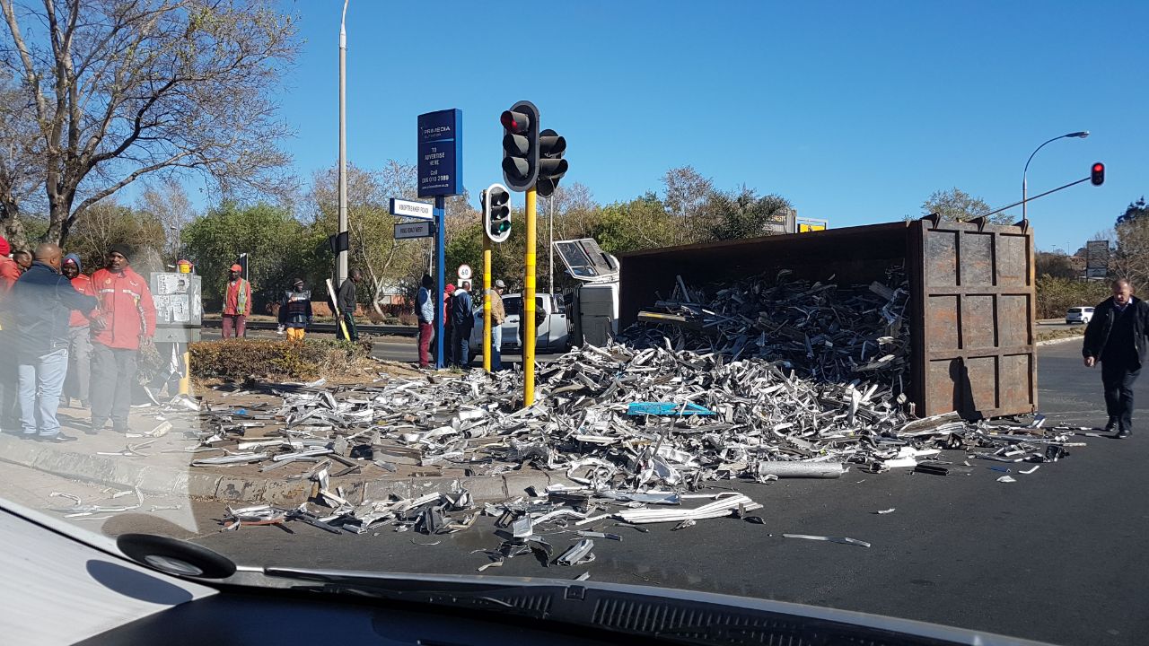 A truck has overturned on the corner of Voortrekker Road and Ring Road West next to the Shell garage this morning, August 17.
