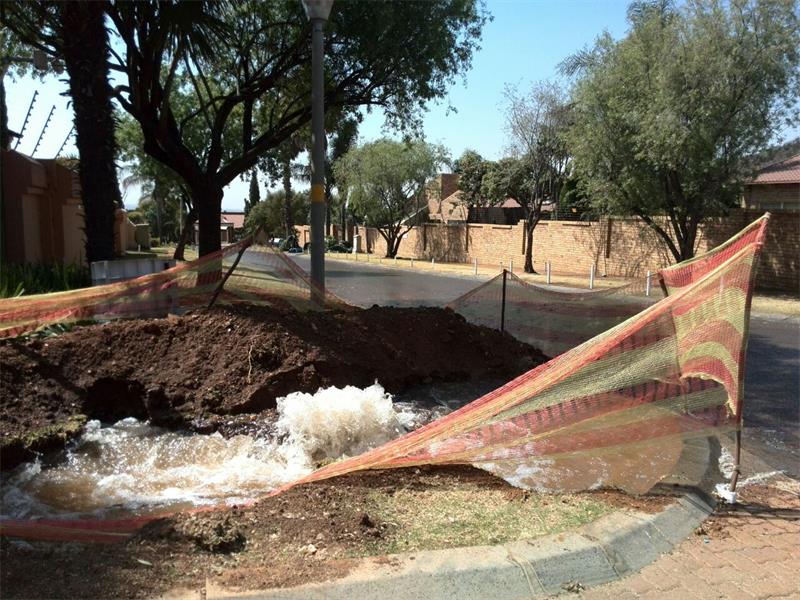 Serious damage has been done to the water pipes and there has been significant water loss at Alma Steyl Place in Meyersdal.