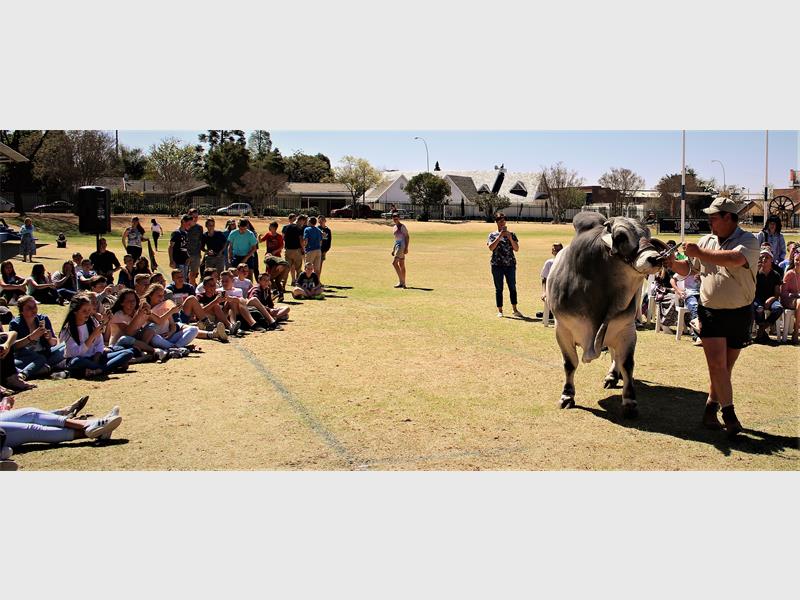 Rump Dump is a game of chance during which a bull wanders the school field and, depending on where the bull takes a ‘dump’, someone wins a cash prize. Participants can buy a spot of the school field for the day and hope that the bull does his business on that spot. The more spots one buys, the bigger the chance of winning!