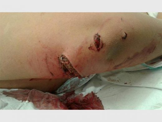 MAULED: One of Luke’s gruesome wounds.
