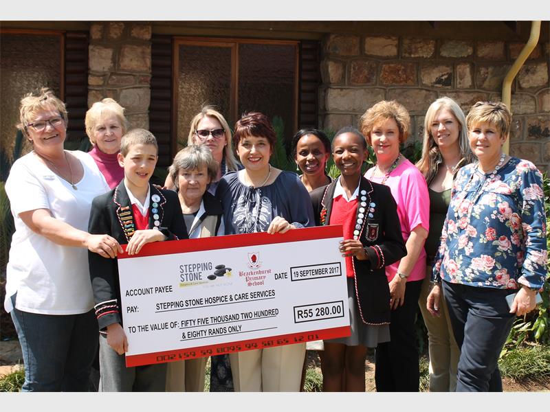 At noon on September 19, Stepping Stone Hospice was elated to receive a big cheque from Brackenhurst Primary School who raised the funds over the past year.