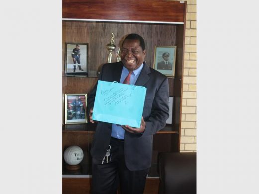 PLEASED: James Sekgotlaboraga with the gift bag from one of the people he helped in his years as a firefighter.
