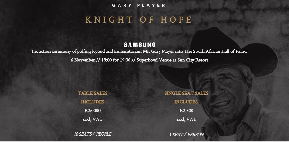 “Player, one of South Africa’s most celebrated sportspeople, businessmen, and humanitarians, is indeed a most decorous icon to be incorporated into the South African Hall of Fame Powered by Samsung. We are honoured to host the induction ceremony in the lead up to the 2017 Nedbank Golf Challenge which plays out on the Gary Player Country Club golf course for the 36th time in November.”