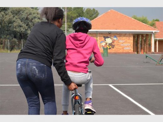 LEARNING WITH LOVE: One of the kids learning how to ride a bike with her mentor.