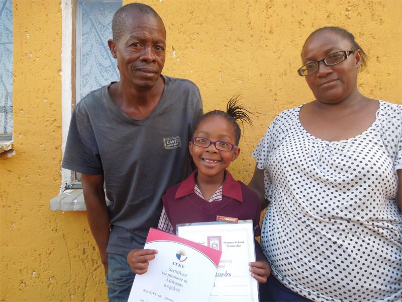 The other certificate was awarded to her by the ATKV for the highest marks in Afrikaans.
