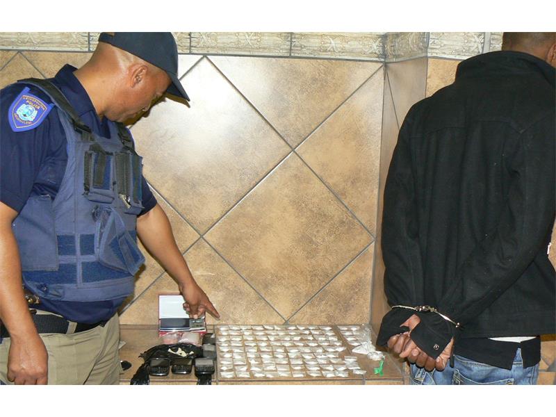 Following-up on a tip-off received around 21:30, the Metro Police arrested a 26-year-old male in a house in Topez Street in Mayberry Park for possession and dealing in dagga. He was found with seven packets of dagga worth R70.