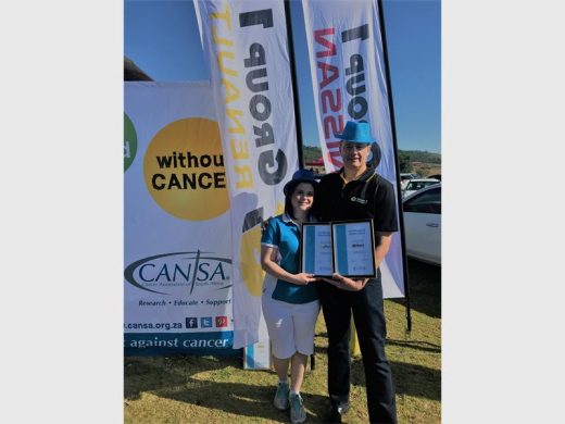 Yolandi Jacobs representing Cansa East Rand handed over certificates of appreciation to George Stegman from Group 1 Nissan & Renault The Glen, as well as to Toni Mackrell from Rietvlei Zoo Farm for making a difference in the fight against cancer.