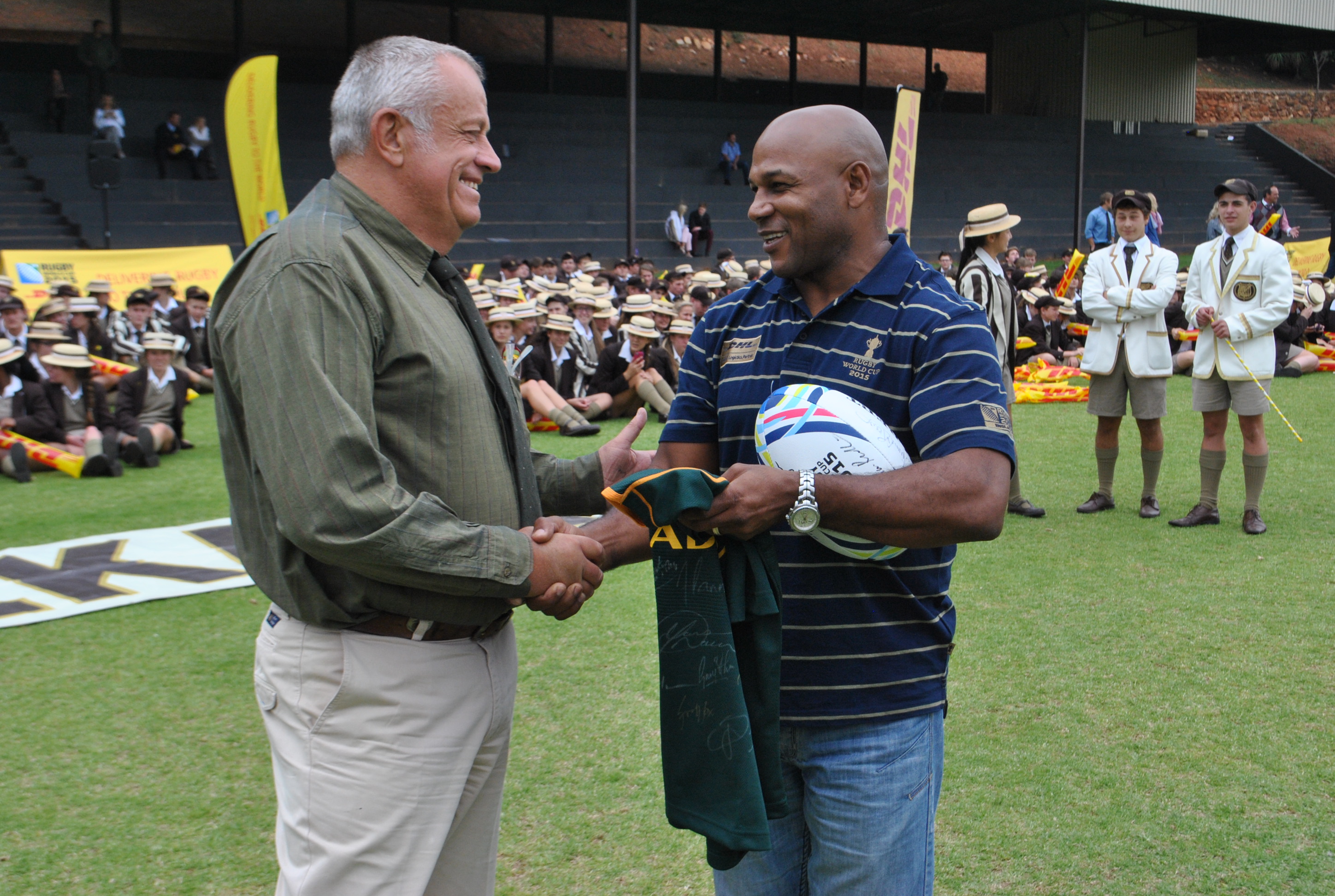 DHL has officially become the logistics partner of the Rugby World Cup 2015 and made a whistle stop at Helpmekaar College on October 28 presenting the trophy.