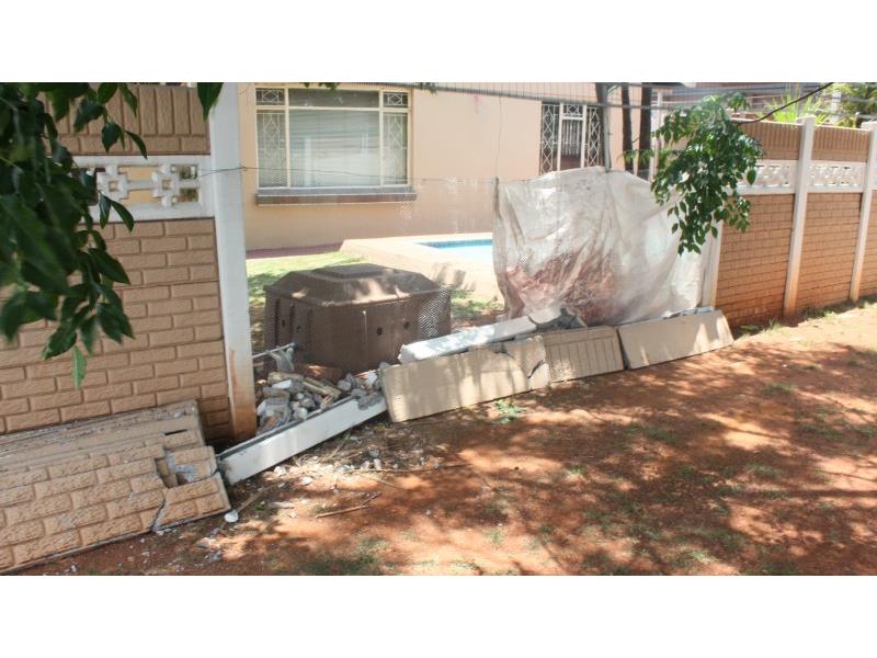 FANIE van der Berg, a resident of a home on the corner of Braun and Vermeulen roads Florentia, heard a noise on Sunday morning November 10 around 04:20. Unaware of what caused the noise or where it came from, Fanie was greeted by the garden worker who informed him what had just happened… a vehicle had crashed into the outside wall of the property.