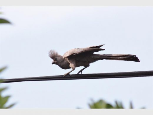 The grey go-away-bird is a common resident in Alberton recognised by both its unique appearance as well as its characteristic call.