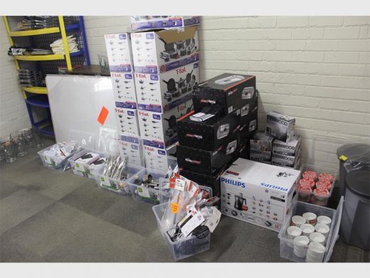 A room was filled with donations.