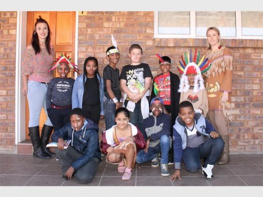 COLOURS OF THE WIND: Teacher Elna Potgieter and Teacher Nikki Street with the Grade Two and Grade Three classes dressed as Indians in reference to Pocahontas.