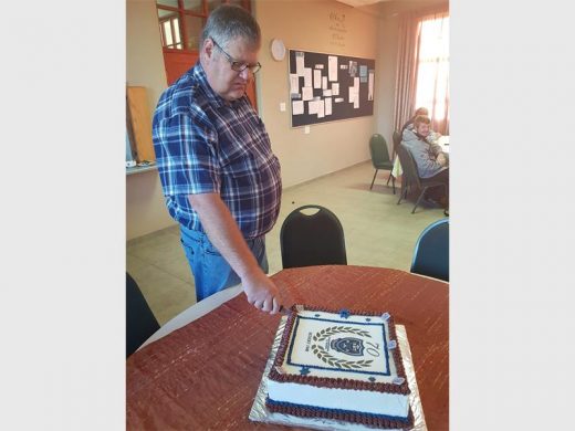Dr Jorrie Jordaan, die skoolhoof, het ook tydens die week ’n koek gesny en leerders en onderwysers het elkeen ’n stukkie gekry.