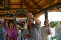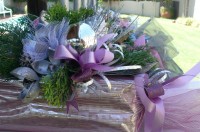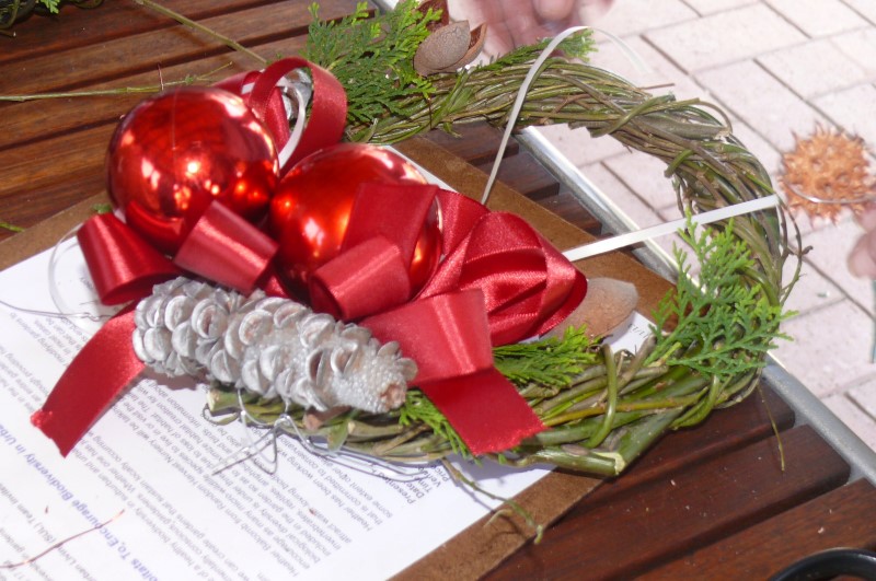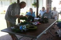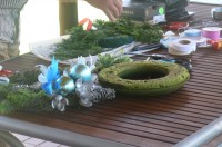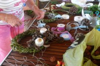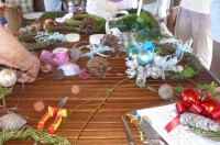 Rob advised the members what they needed to bring to the meeting but for those who had forgotten there was plenty of natural decorations, including seed pods, conifers, ribbons and baubles.