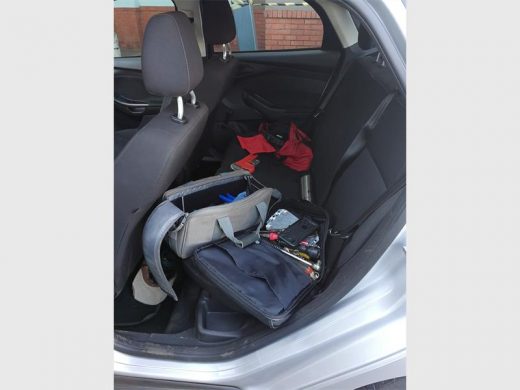 Inside the vehicle they found a two-way radio and a couple of bags with break-in implements.