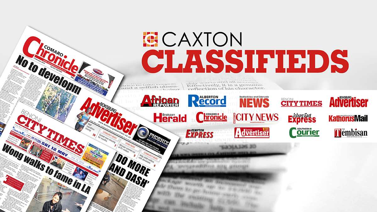 Call the classifieds department NOW on : 011 916 5301